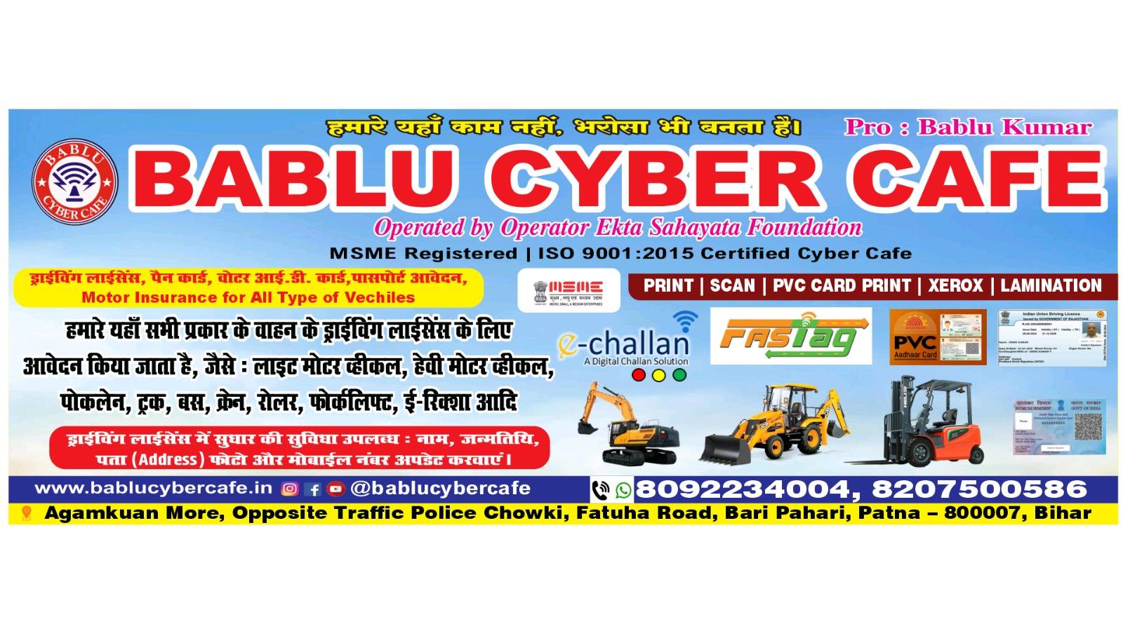 Looking for license services in Patna for heavy vehicles? Whether it's for a JCB, crane, loader, or auto, Bablu Cyber Cafe offers quick and reliable support.